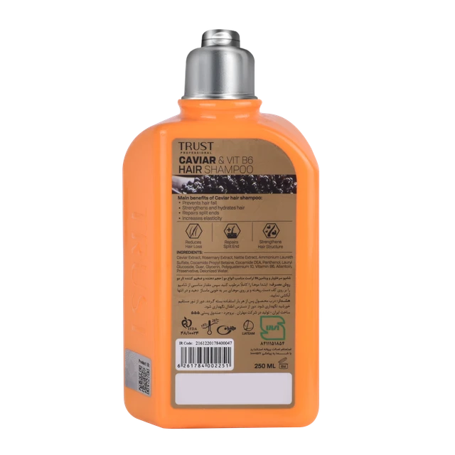 شامپو سر خاویار و ویتامین B6 تراست ترکیبی تخصصی برای افزایش حجم و تقویت ساختار مو است. عصاره خاویار بهعنوان منبعی غنی از پروتئینها و اسیدهای آمینه، باعث تقویت ریشه و ساقه مو میشود و با پر کردن خلل و فرج سطح تارها، ظاهری پرپشتتر و سالمتر به موها میبخشد. ویتامین B6 همراه با عصاره رزماری به تقویت فولیکولها و بهبود گردش خون موضعی کمک میکنند تا رشد موها به شکل طبیعی حمایت شود.