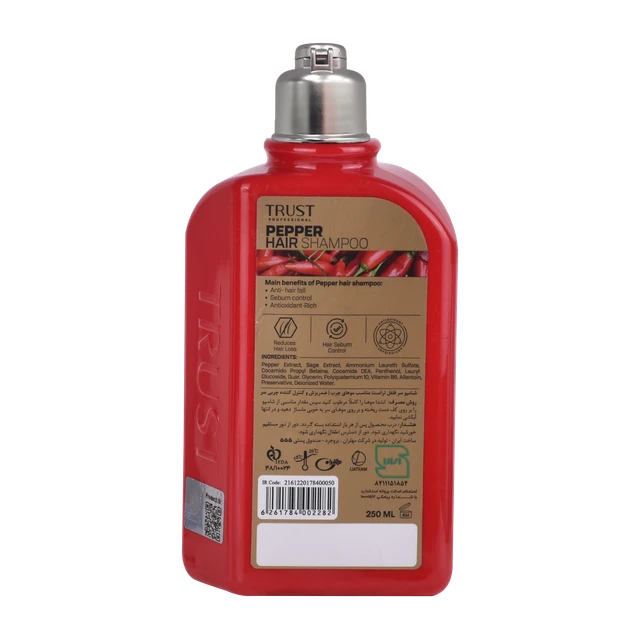 شامپو سر فلفل تراست فرمولاسیون تخصصی‌ ای دارد که برای افرادی طراحی شده است که از ریزش مو و چربی زیاد پوست سر رنج می‌برند. عصاره فلفل موجود در این شامپو با تحریک ملایم فولیکول‌ ها و افزایش گردش خون در پوست سر، به تقویت ریشه مو و کاهش ریزش کمک می‌کند. ترکیب این عصاره با مواد مغذی مانند پانتنول و ویتامین B6، فرمولی قدرتمند برای حفظ سلامت و استحکام تارهای مو ایجاد کرده است.