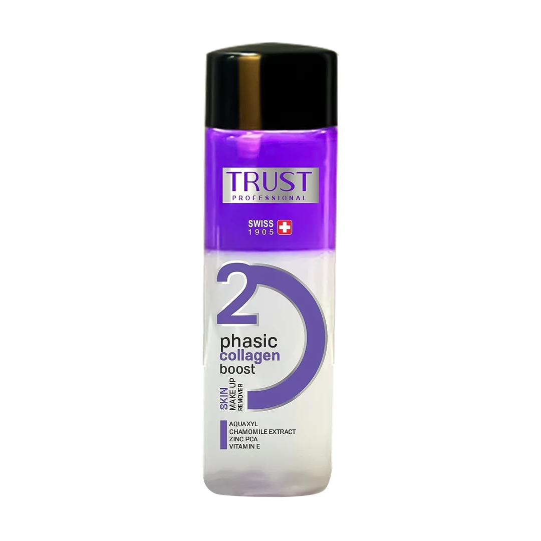 این محصول برای کسانی که روزانه آرایش می‌کنند یا از محصولات ضد آب استفاده می‌نمایند، یک انتخاب حرفه‌ ای و در عین حال ملایم است. ترکیب مؤثره‌ها کلاژن هیدرولیز شده، آکواکسیل، عصاره بابونه، زینک PCA و ویتامین E—با هم عملکردی چند گانه ارائه می‌دهند: پاکسازی عمیق، حفاظت و ترمیم بافت پوست، آبرسانی و کاهش تحریک. استفاده منظم از محلول دوفازی تراست می‌تواند به بهبود بافت پوست، کاهش منافذ باز و کاهش علائم التهابی کمک کند.