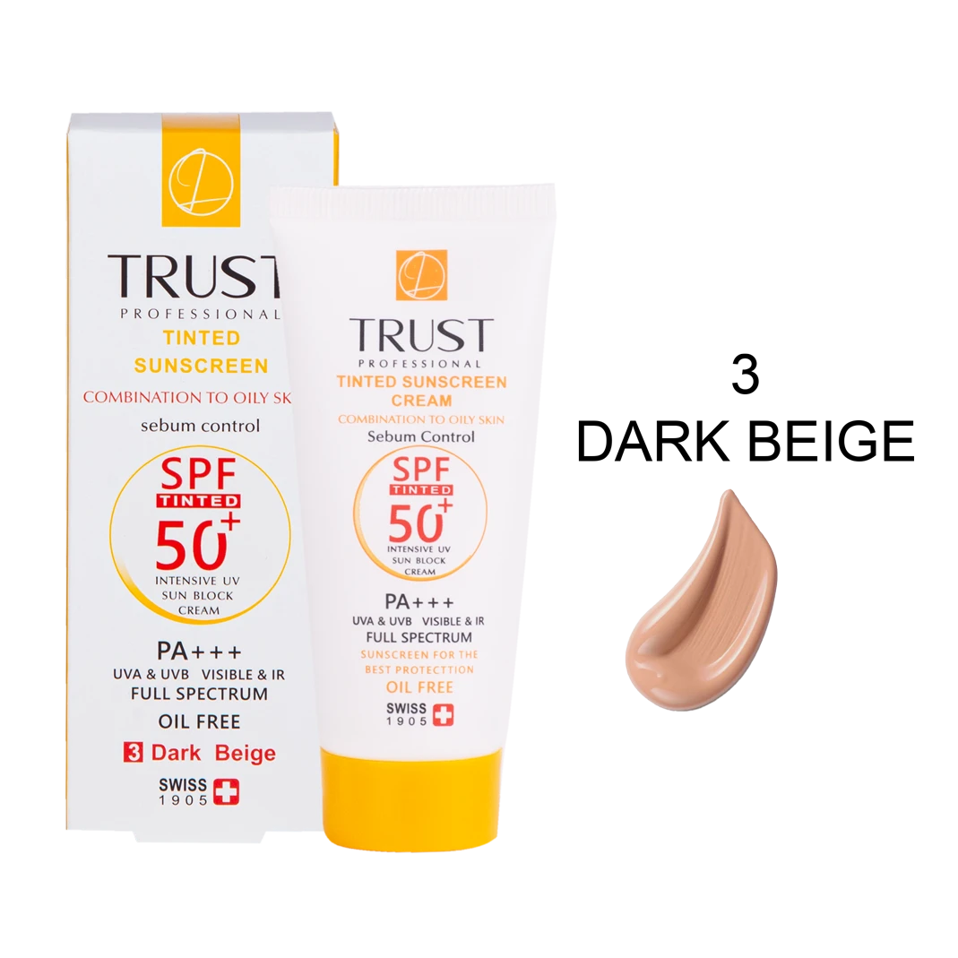 کرم های ضد آفتاب رنگی تراست با SPF50+ از مرغوب ترین و جدیدترین مواد اولیه موثره دارای حداکثر حفاظت دربرابر پرتو های مضر خورشید ساخته شده اند؛ این کرم با وجود بهرهمندی از بافتی سبک، دربرابر آسیب های وارده توسط نور خورشید به خوبی از پوست محافظت و با مهار رادیکال های آزاد از تخریب سلول های پوستی جلوگیری میکند. همچنین با مصرف این محصول، بدون بسته شدن منافذ پوستی و ایجاد خلل در تنفس سلول های پوستی، ضمن کنترل چربی، پوست ان آبرسانی میشود.
